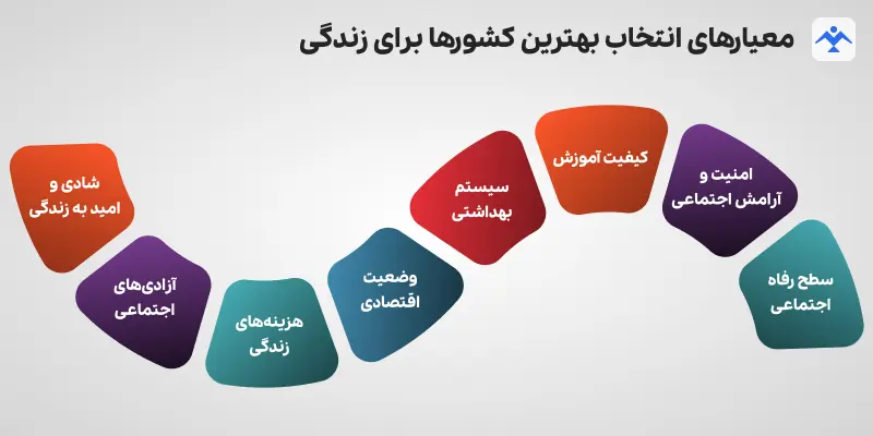 انتخاب بهترین کشور برای زندگی نیازمند در نظر گرفتن چندین معیار مهم است. این معیارها شامل موارد زیر هستند: