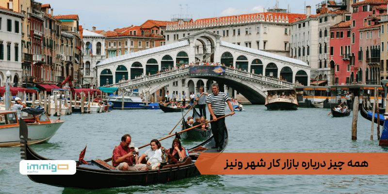 بازار کار در ونیز عمدتاً بر پایه گردشگری و خدمات مرتبط با آن شکل گرفته است و بخش بزرگی از فرصتهای شغلی این شهر با حضور گردشگران و فعالیتهای خدماتی مرتبط است. بر اساس اطلاعات منتشرشده در سایت Fiveable، مهمترین حوزههای اشتغال شامل صنعت گردشگری، هتلداری، رستورانها، ارائه خدمات گردشگری و راهنمای تور، صنایع دستی سنتی و فروشگاههای محلی هستند.