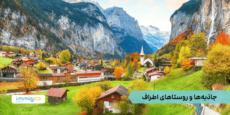 در کنار آبشارها، یکی از جنبههای مهم در معرفی شهر لاوتربرونن، روستاهای اطراف و جاذبههای نزدیک به آن است. این مناطق به راحتی از طریق قطار یا تلهکابین قابل دسترسیاند و هرکدام جذابیت خاص خود را دارند: