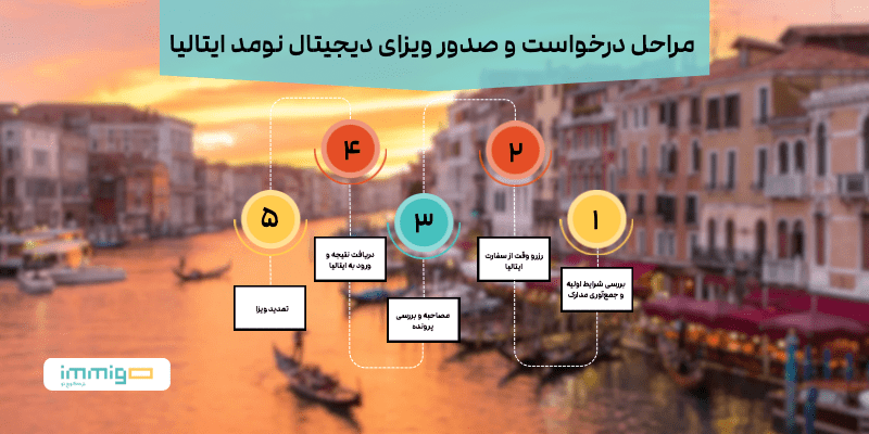 فرآیند اخذ ویزای دیجیتال نومد ایتالیا شامل چند مرحله رسمی است که از آمادهسازی مدارک تا دریافت مجوز اقامت (Permesso di Soggiorno) را در بر میگیرد. این ویزا تحت طبقهبندی ویزای نوع D صادر میشود و معمولاً یکساله است، اما قابل تمدید خواهد بود.
