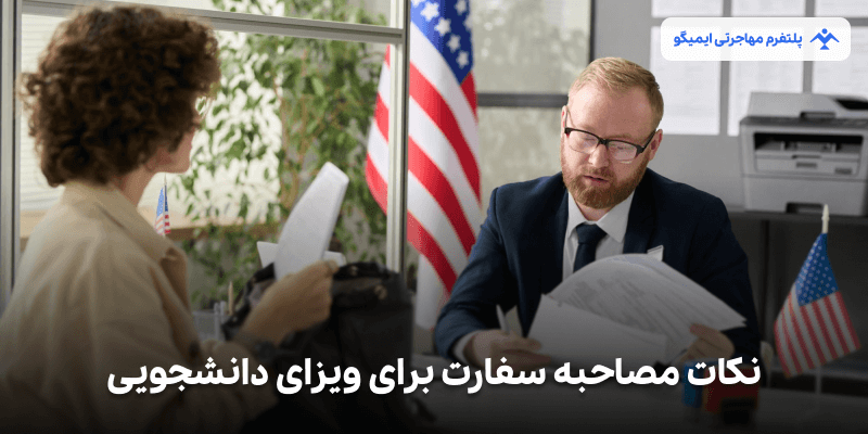 در طول مصاحبه سفارت برای ویزای دانشجویی، آمادگی کامل برای پاسخ به سوالات مربوط به هدف تحصیل، برنامههای آینده و توانایی مالی شما حیاتی است. این مصاحبه گامی مهم در مسیر کلی مهاجرت تحصیلی شما محسوب میشود. از آمادهسازی مدارک لازم گرفته تا پاسخهای شفاف و قانعکننده، هر مرحله نیازمند دقت است. برای کسب اطلاعات جامعتر دربارهی تمامی مراحل و جنبههای مهاجرت تحصیلی به خارج از کشور، از جمله انتخاب مقصد، اخذ پذیرش و انواع ویزا، پیشنهاد میکنیم به صفحه «مهاجرت تحصیلی» مراجعه کنید. این صفحه دیدگاهی کاملتر از مسیری که پیش رو دارید به شما میدهد.